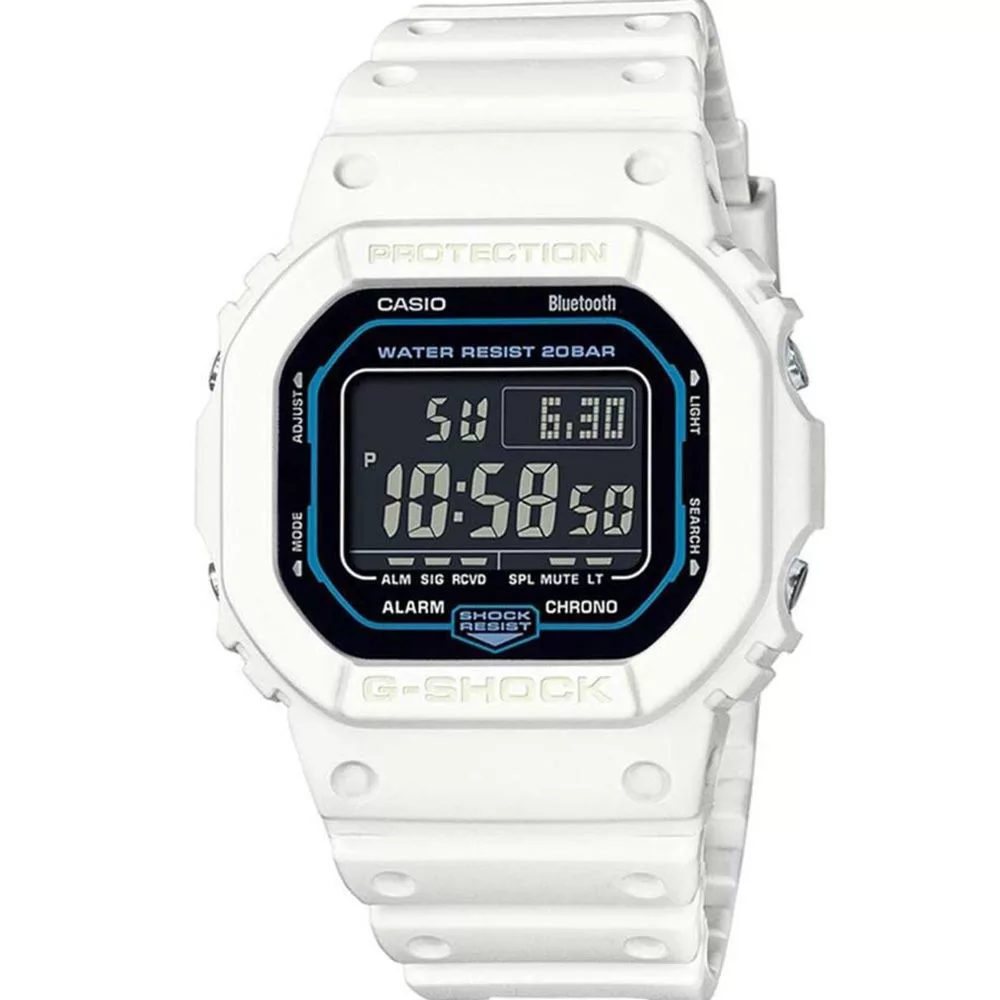 Materijal kućišta sata Casio G-Shock SCI-FI World Series muški sat DW-B5600SF-7ER je plastika, njegova boja je beo, materijal kaiša je plastika i njegova boja je beo. Prečnik kućišta sata je 43 mm, njegov oblik je kvadrat. Staklo sata je kristal (teško je ogrebati), njegov mehanizam je kvarc i njegova vodootpornost je 20 atm (200m) (pogodno za ronjenje).