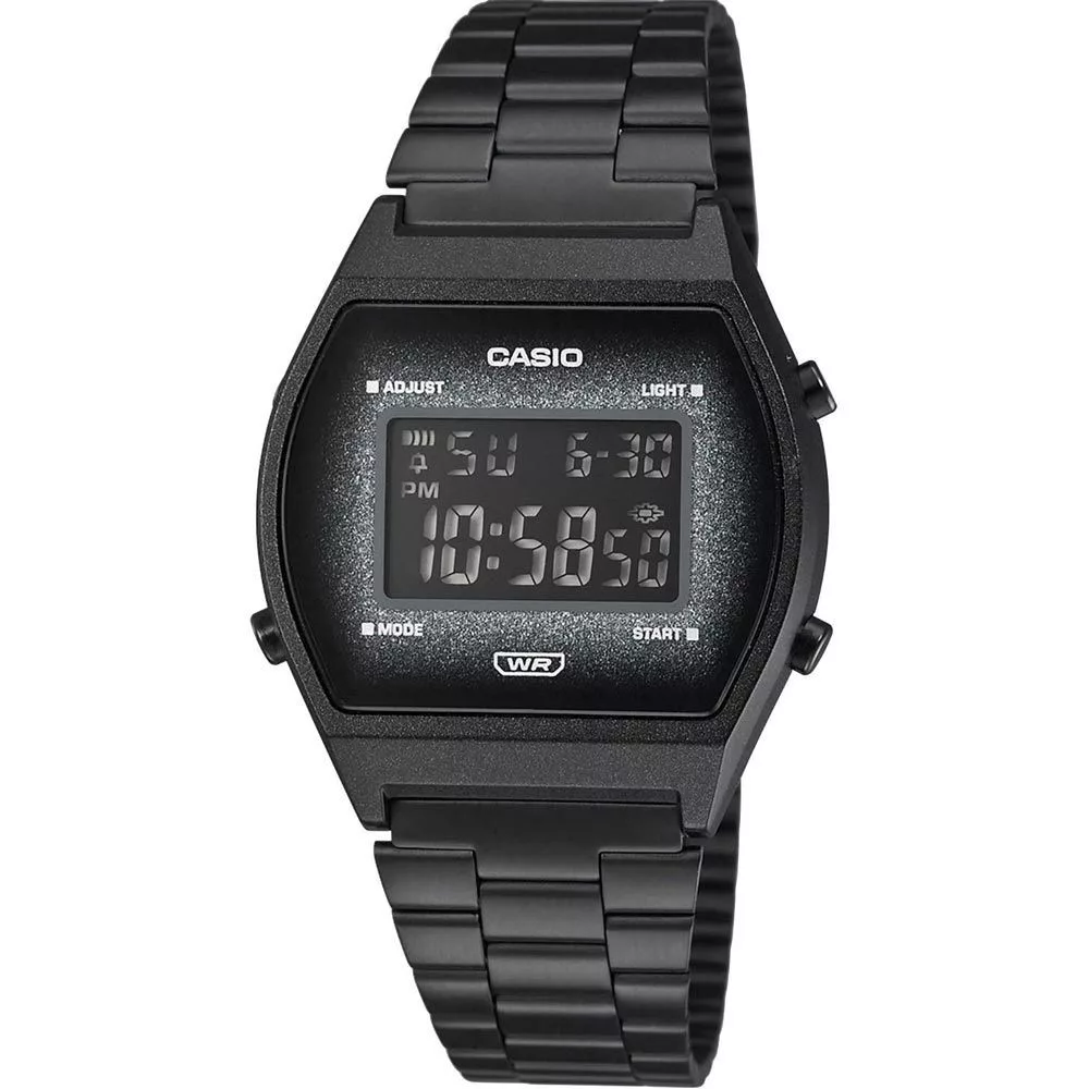 Materijal kućišta sata Casio Vintage ženski sat B640WBG-1BEF je plastika, njegova boja je crn, materijal kaiša je nerđajući čelik i njegova boja je crn. Prečnik kućišta sata je 35 mm, njegov oblik je kvadrat. Staklo sata je pleksiglas (plastika), njegov mehanizam je kvarc i njegova vodootpornost je 5 atm (50m) (visoka otpornost na padove).