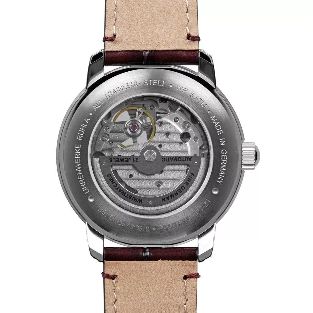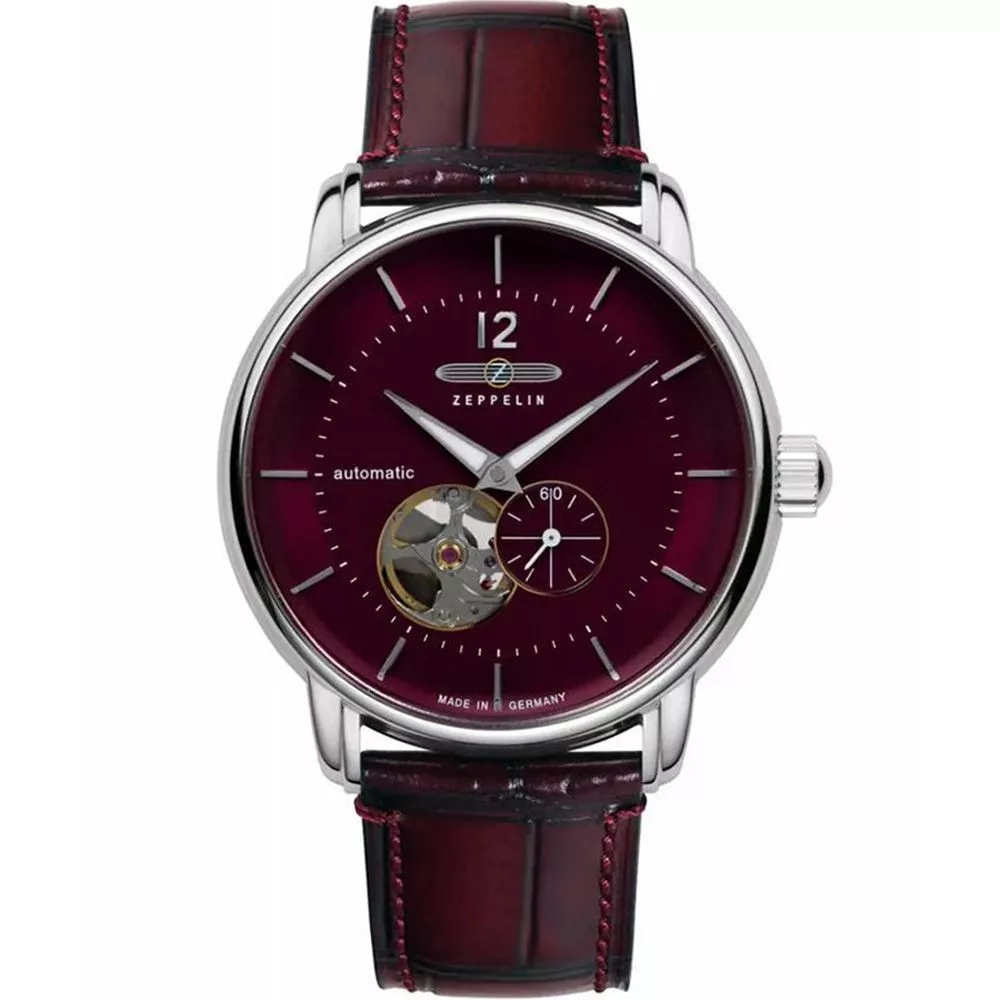 Materijal kućišta sata Zeppelin LZ120 Bodensee muški sat 8166-5 je nerđajući čelik, njegova boja je srebro, materijal kaiša je koža i njegova boja je burgundija. Prečnik kućišta sata je 40 mm, njegov oblik je točak. Staklo sata je kristal (teško je ogrebati), njegov mehanizam je automatski i njegova vodootpornost je 5 atm (50m) (visoka otpornost na padove).